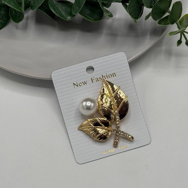 سنجاق سینه مجلسی دو برگ مرواریدی هدیه خاص و جذاب