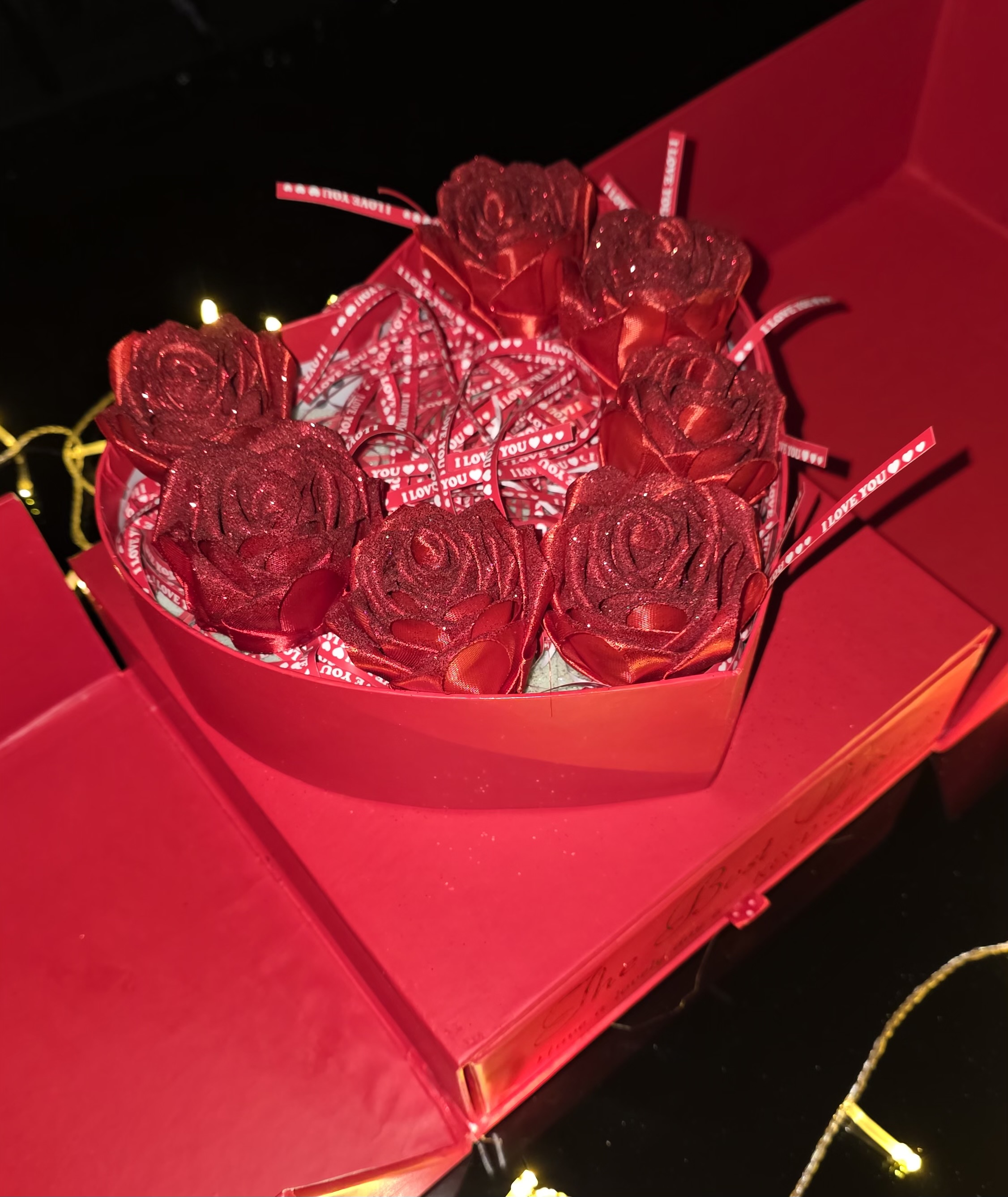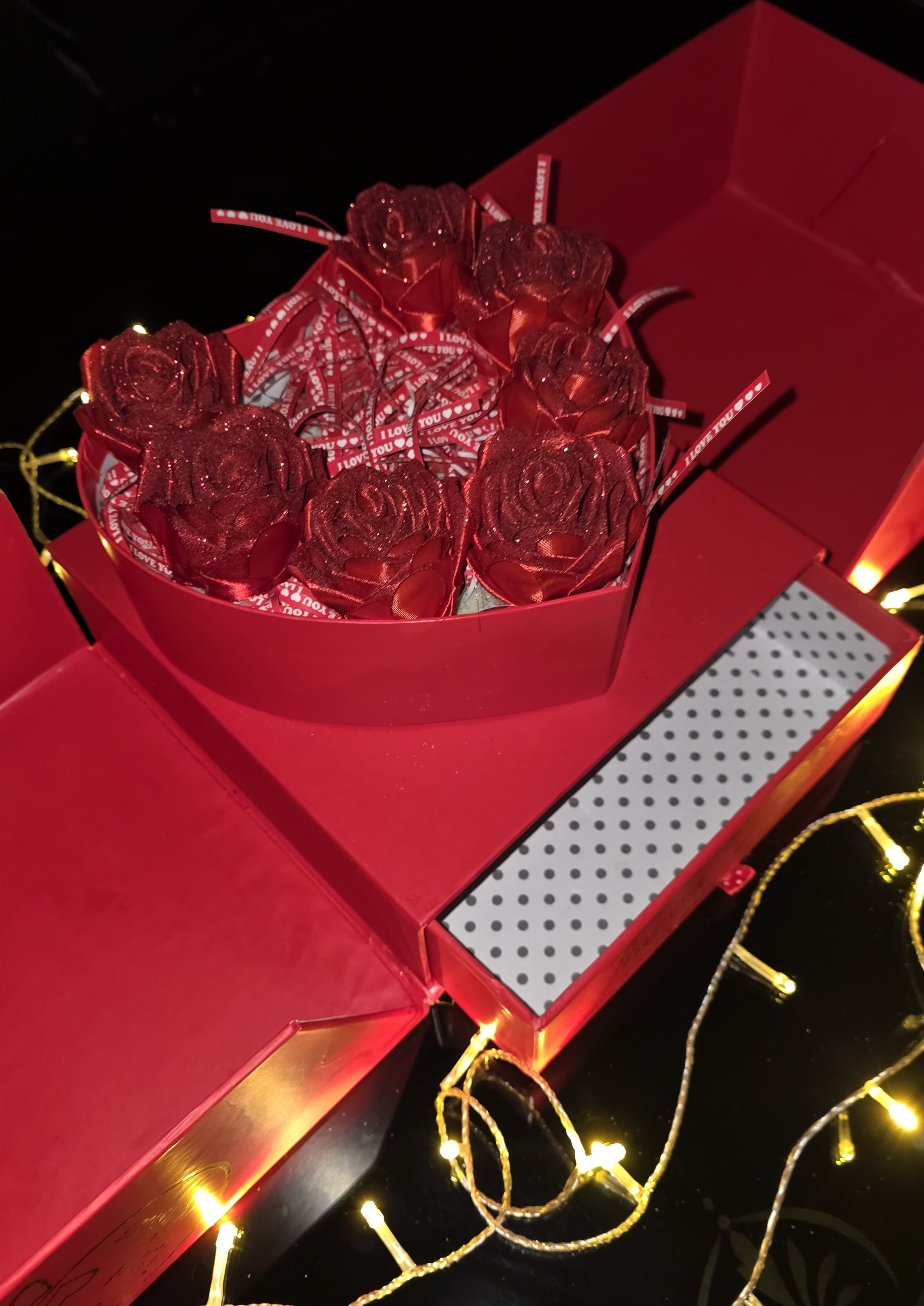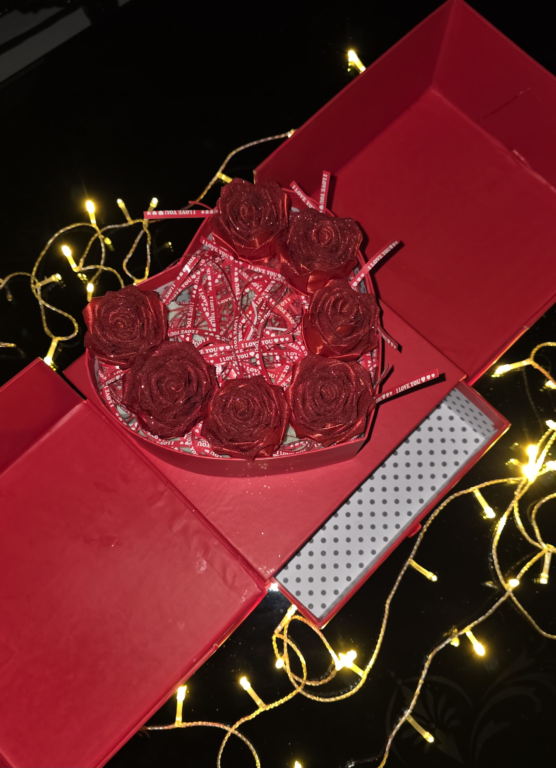 باکس سوپرایزی قلب مشکی دوطبقه ولنتاین گل رز ابدی هدیه تولد خیلی خاص