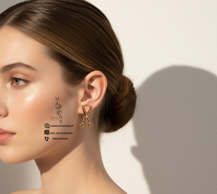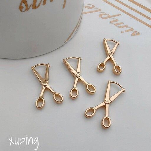 گوشواره ژوپینگ مدل قیچی آبکاری طلا رنگ ثابت و ضد آب و ضد حساسیت، مناسب خانم های آرایشگر که علاقه ویژه ای به المان قیچی دارن