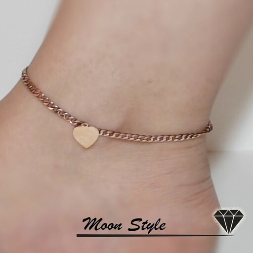 پابند زنجیری طرح آویز قلب، رنگ رزگلد جنس استیل رنگ ثابت و ضد حساسیت و ضد آب