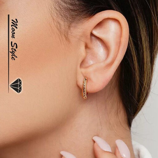 گوشواره ژوپینگ مدل حلقه ای طرح دار، آبکاری طلا، رنگ ثابت و ضد حساسیت و ضد آب