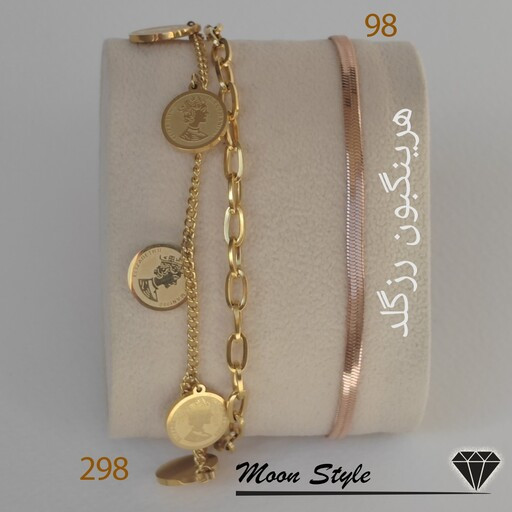 دیدن محصولات مرتبططرح دستبند هرینگبون هست یا همان طرح ماری، رنگ رزگلد، مدل سمت راست تصویر هست، رنگ ثابت و ضد آب و ضد حساسیت