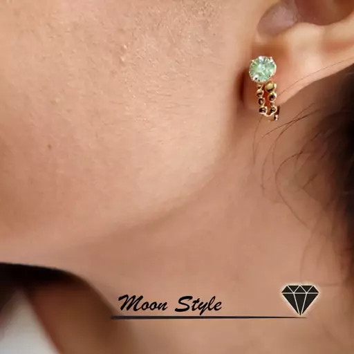 گوشواره زنانه نگین سبز ژوپینگ آبکاری طلا