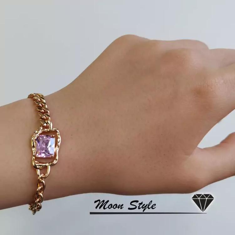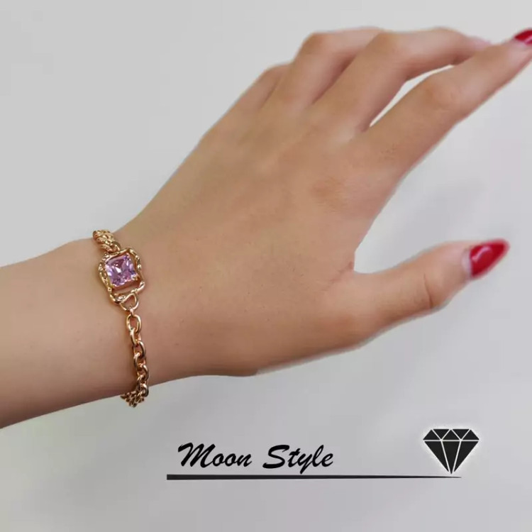 دستبند زنانه مجلسی نگین دار برند ژوپینگ صورتی قفل تی