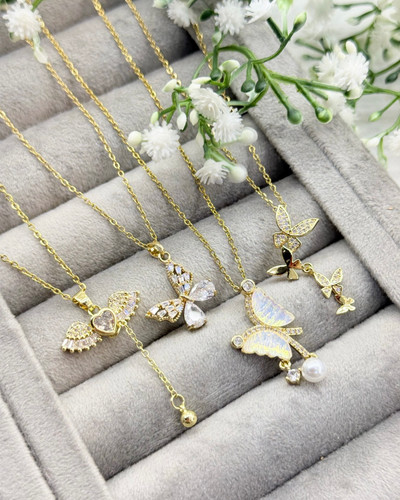 گردنبند دخترانه پروانه رزینی رزگلد صدفی