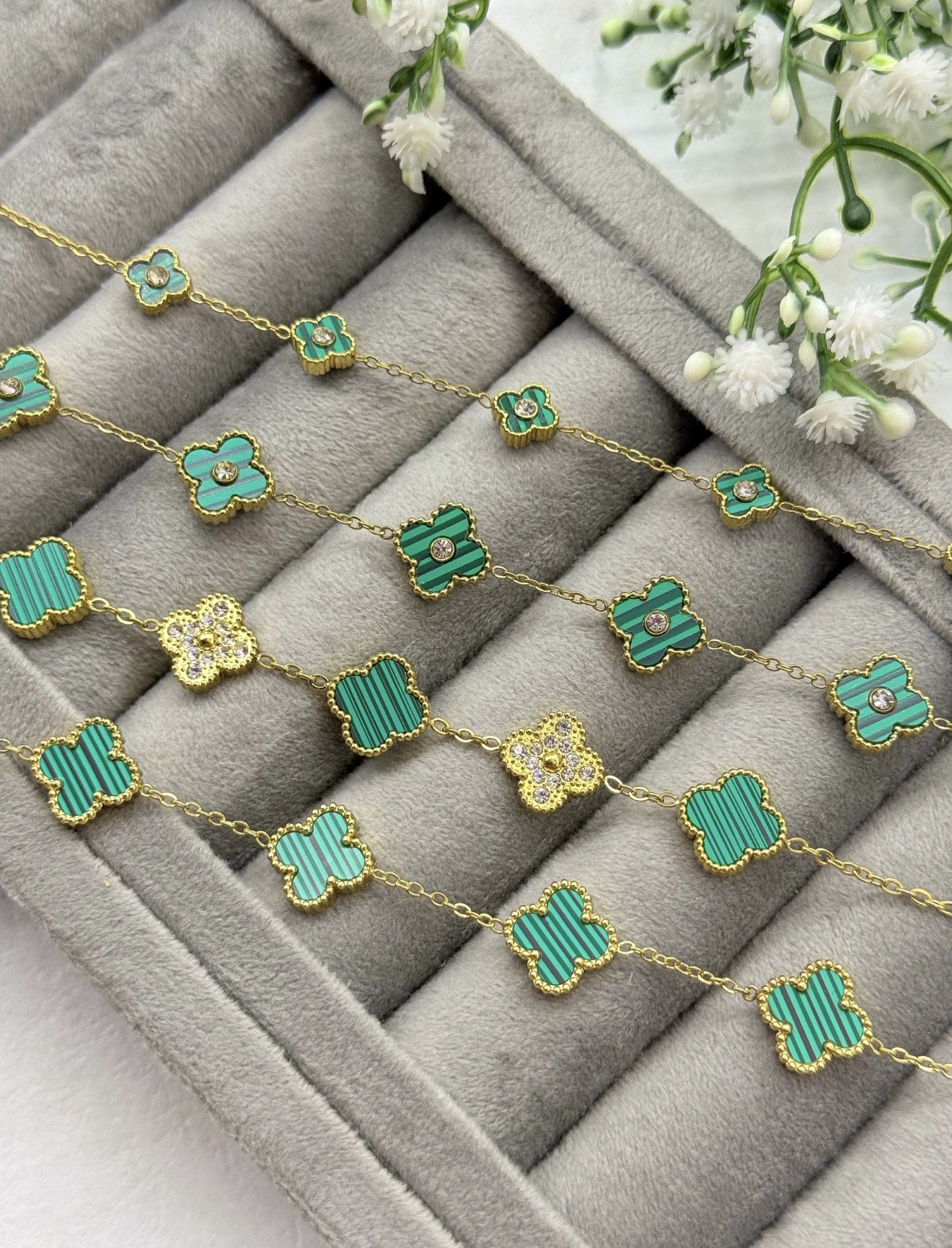 دستبند پلاک نگین با سنگ رنگ طبیعت (سنگ چشم گربه و ...)