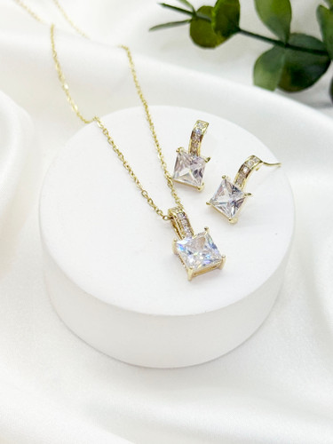 نیم ست عروس زنانه اشک فول نگین مشابه طلا