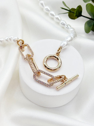 نیم ست ژوپینگ زنانه رزگلد طرح کریستال جواهری به همراه زنجیر ماری