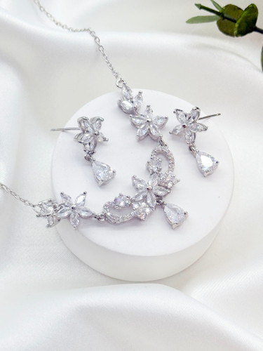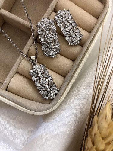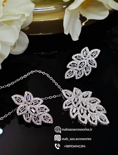 نیم ست کامل عروس مدل ژرویرا مشابه طلا سفید کد XU210 رنگ ثابت