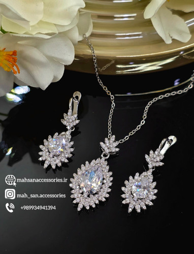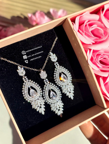 نیم ست جذاب ظریف اشک فرشته سوارسکی فول نگین رنگ ثابت