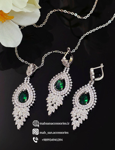 نیم ست ظریف جواهری زمردی کد GIRL0015