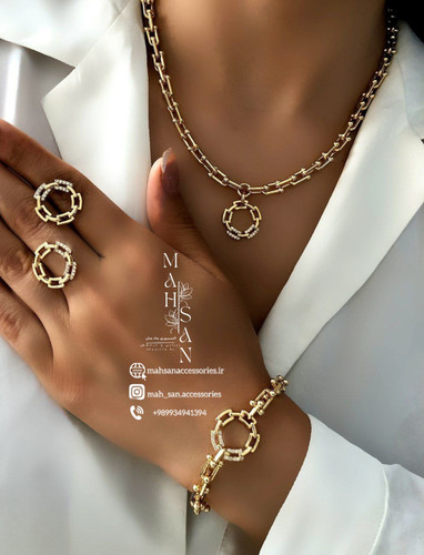 نیم ست 4تکه زنانه تیفانی طرح طلا رنگ گلد رنگ ثابت پلاک نگیندار تیفانی تک وسط