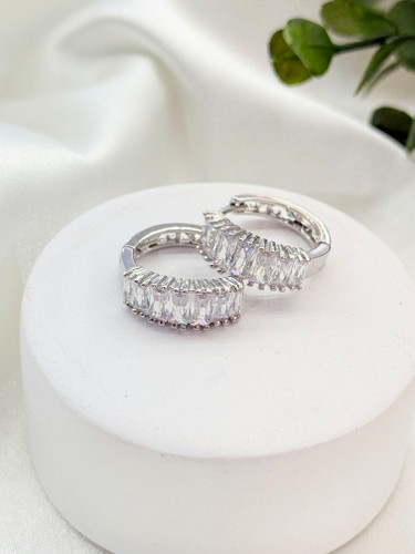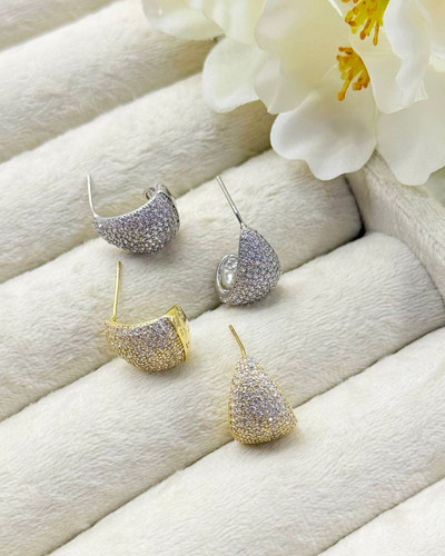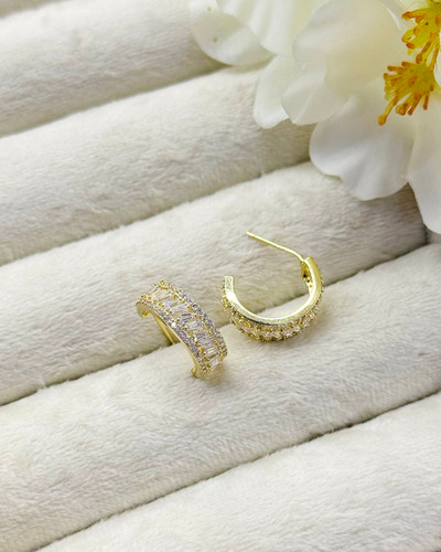 گوشواره زنانه طرح طلا فول نگین رنگ سیلور