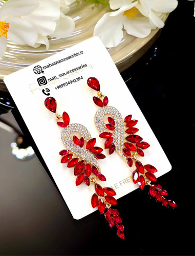 گوشواره یلدایی زنانه مجلسی جواهری قرمز هدیه خاص و جذاب