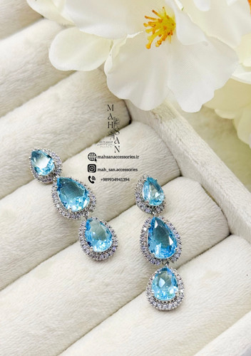 گوشواره زنانه جواهر یاقوت آبی رنگ آسمان برند ژوپینگ هدیه خاص و جذاب