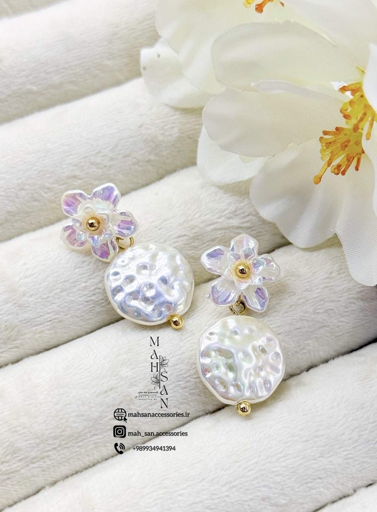 گوشواره گل هفت رنگ با آویز صدف دریا