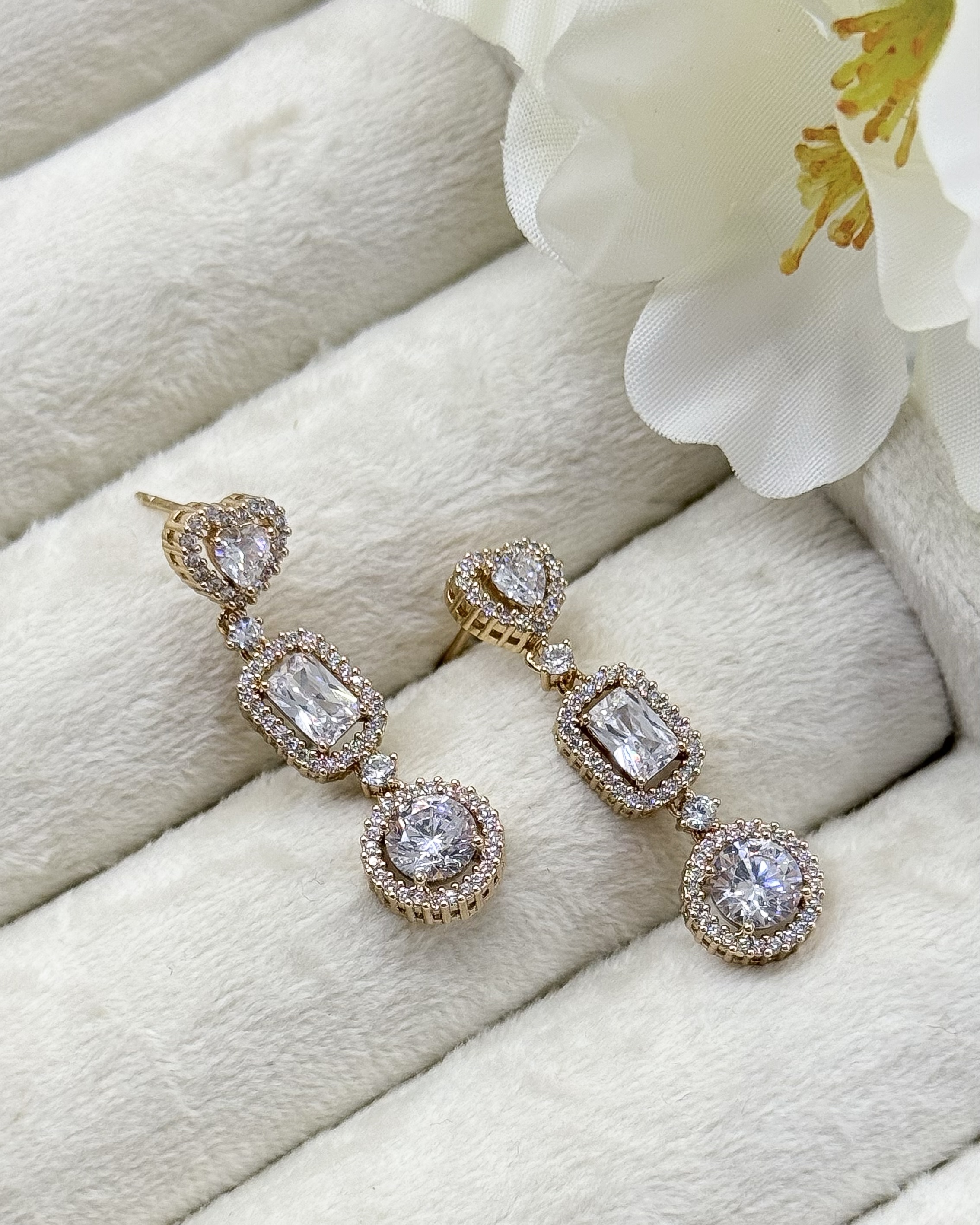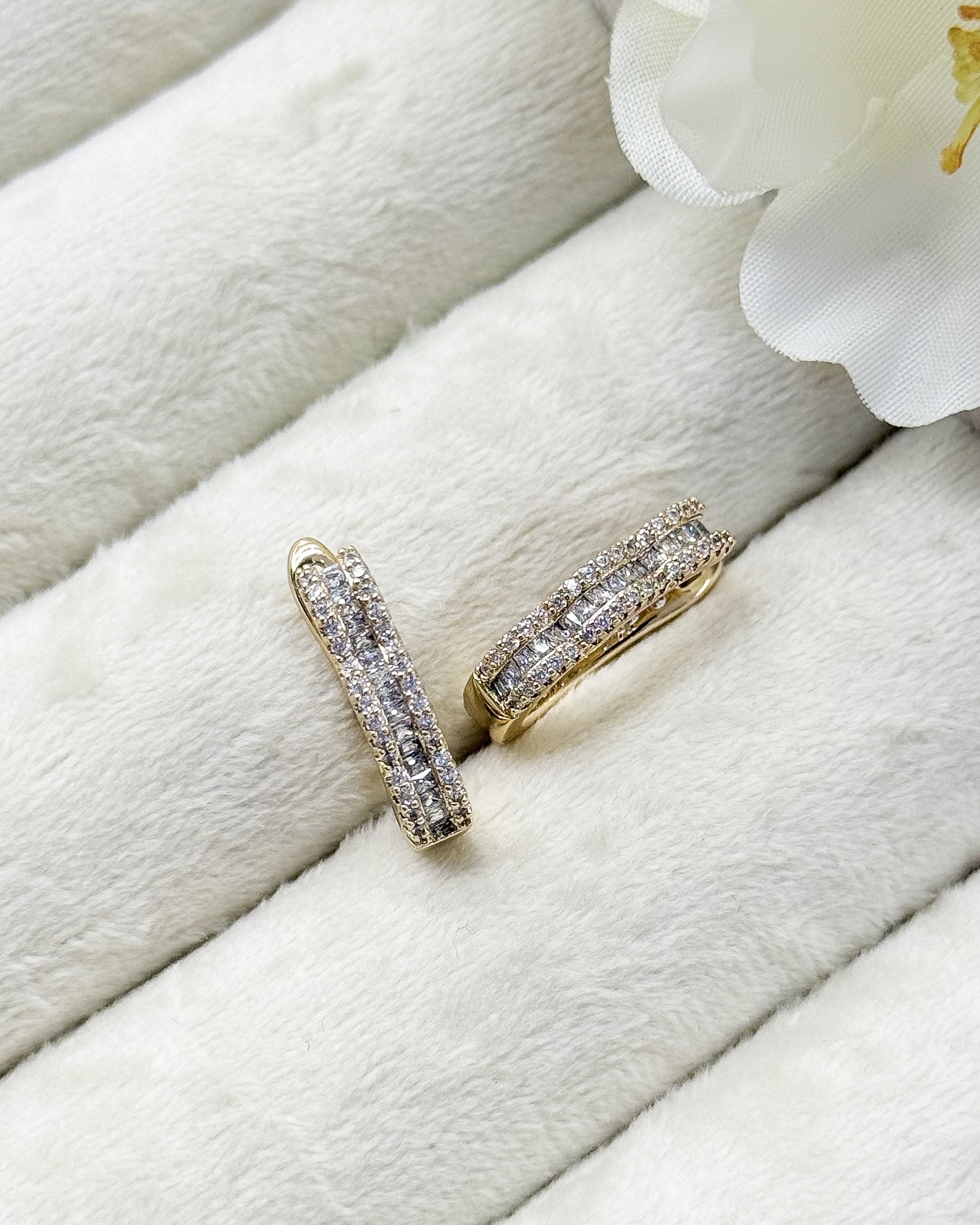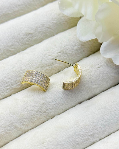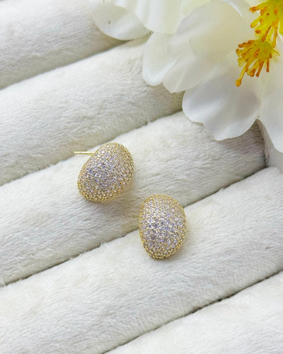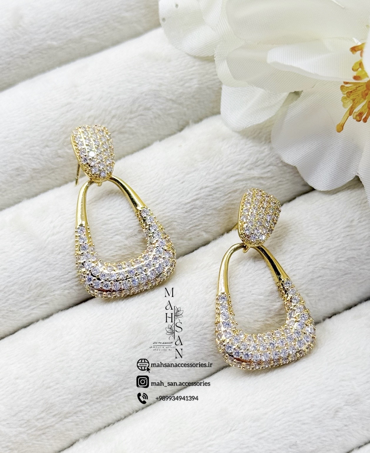 گوشواره زنانه مجلسی فول نگین گلد سایز متوسط