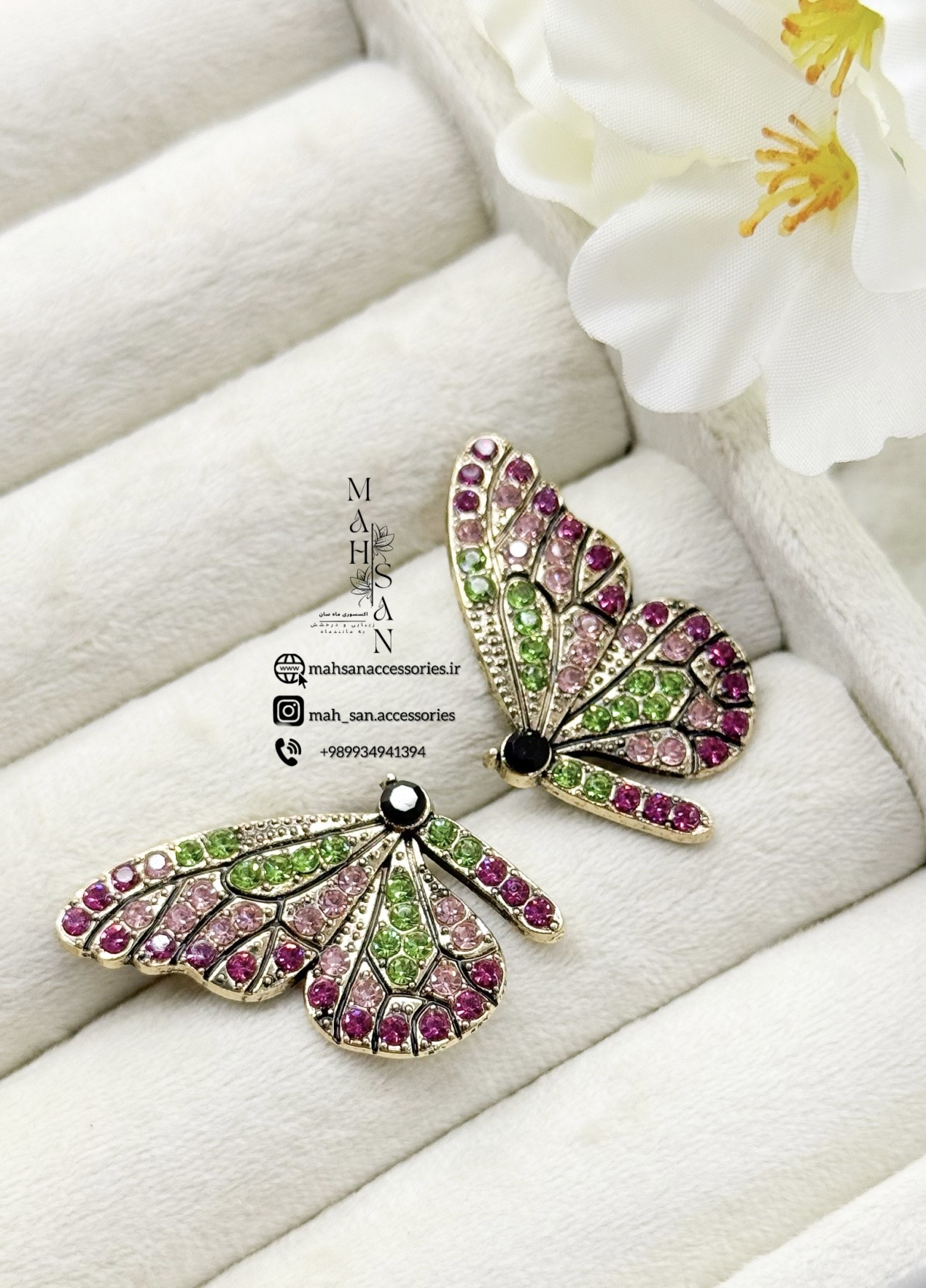 گوشواره دخترانه پروانه سوارسکی ارغوان ماه ژوپینگ