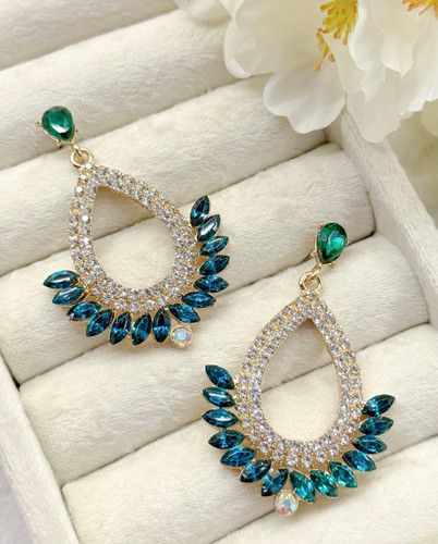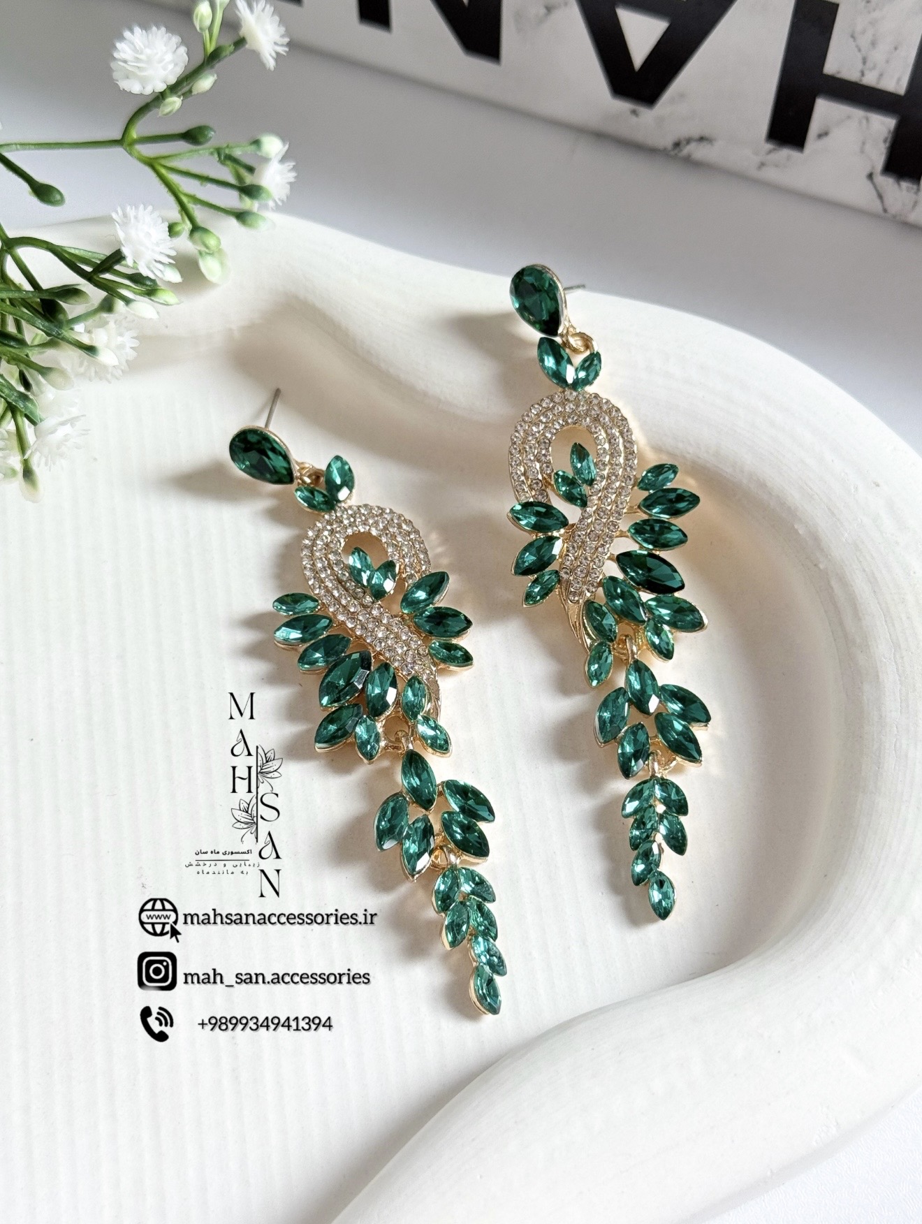 گوشواره یلدایی مجلسی جواهری سبز دریایی هدیه خاص و جذاب