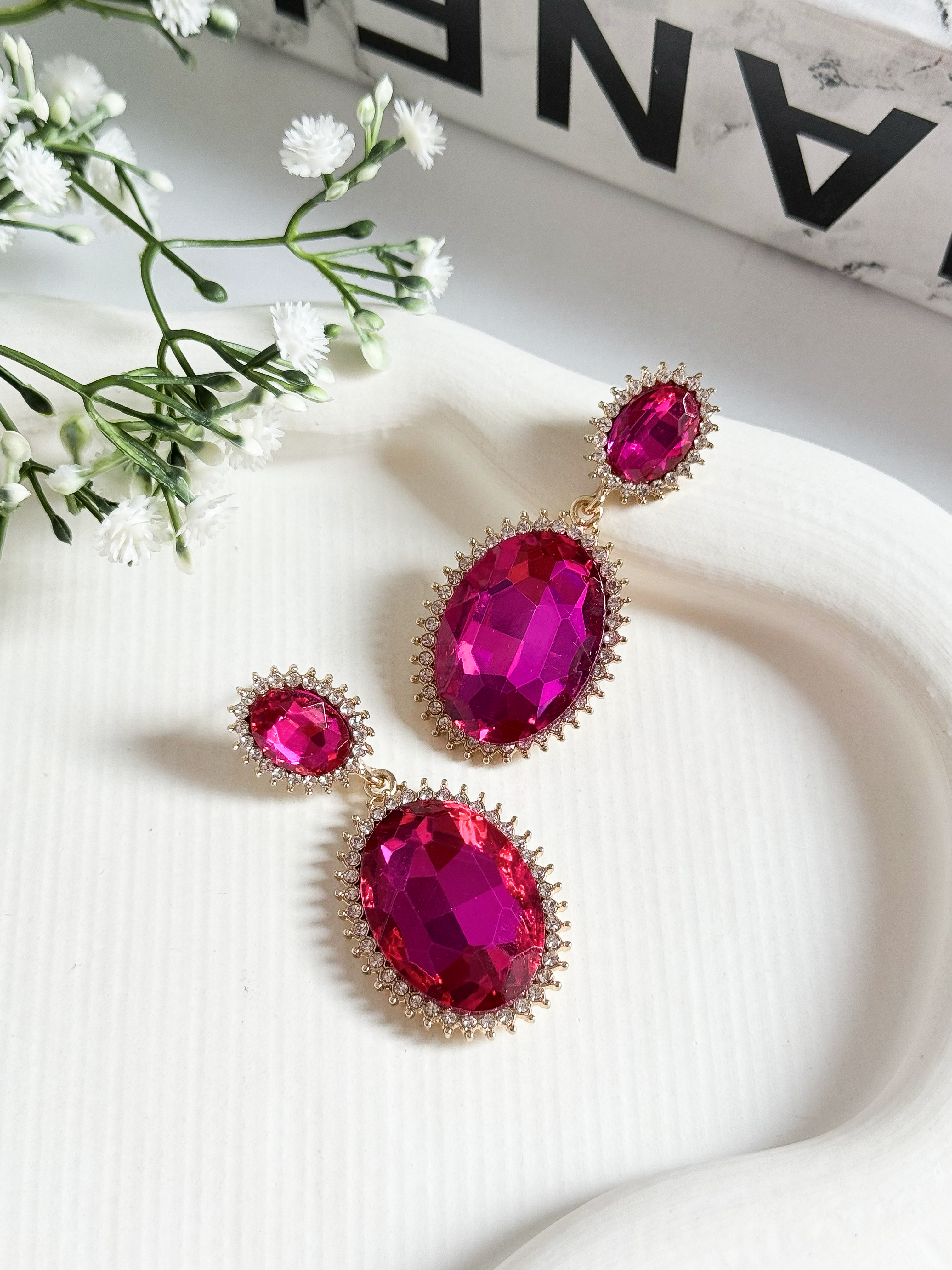 گوشواره یلدایی نگین سرخابی هدیه خاص و جذاب سایز متوسط