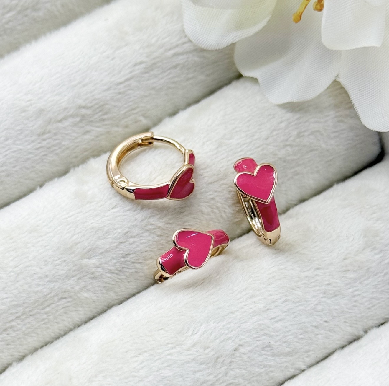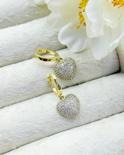گوشواره زنانه قلب طلایی نگینی سایز کوچک