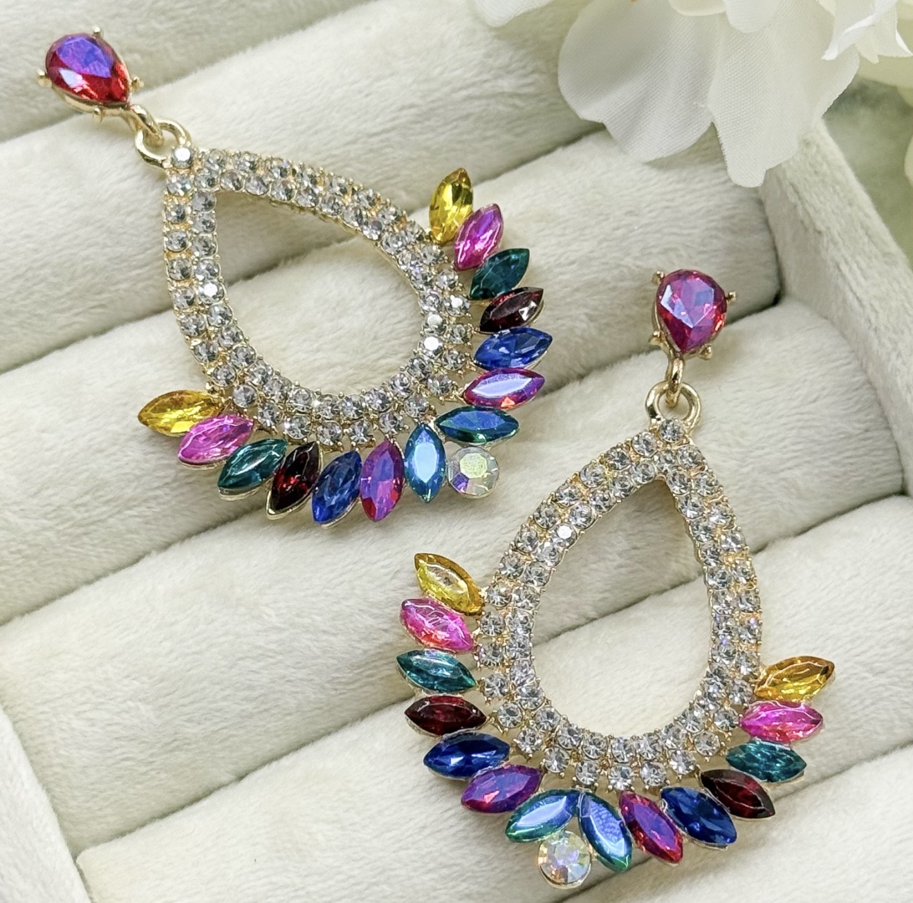 گوشواره مجلسی جواهری چندرنگ سایز متوسط