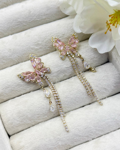 گوشواره دخترانه پروانه صورتی فوق العاده جذاب و خاص