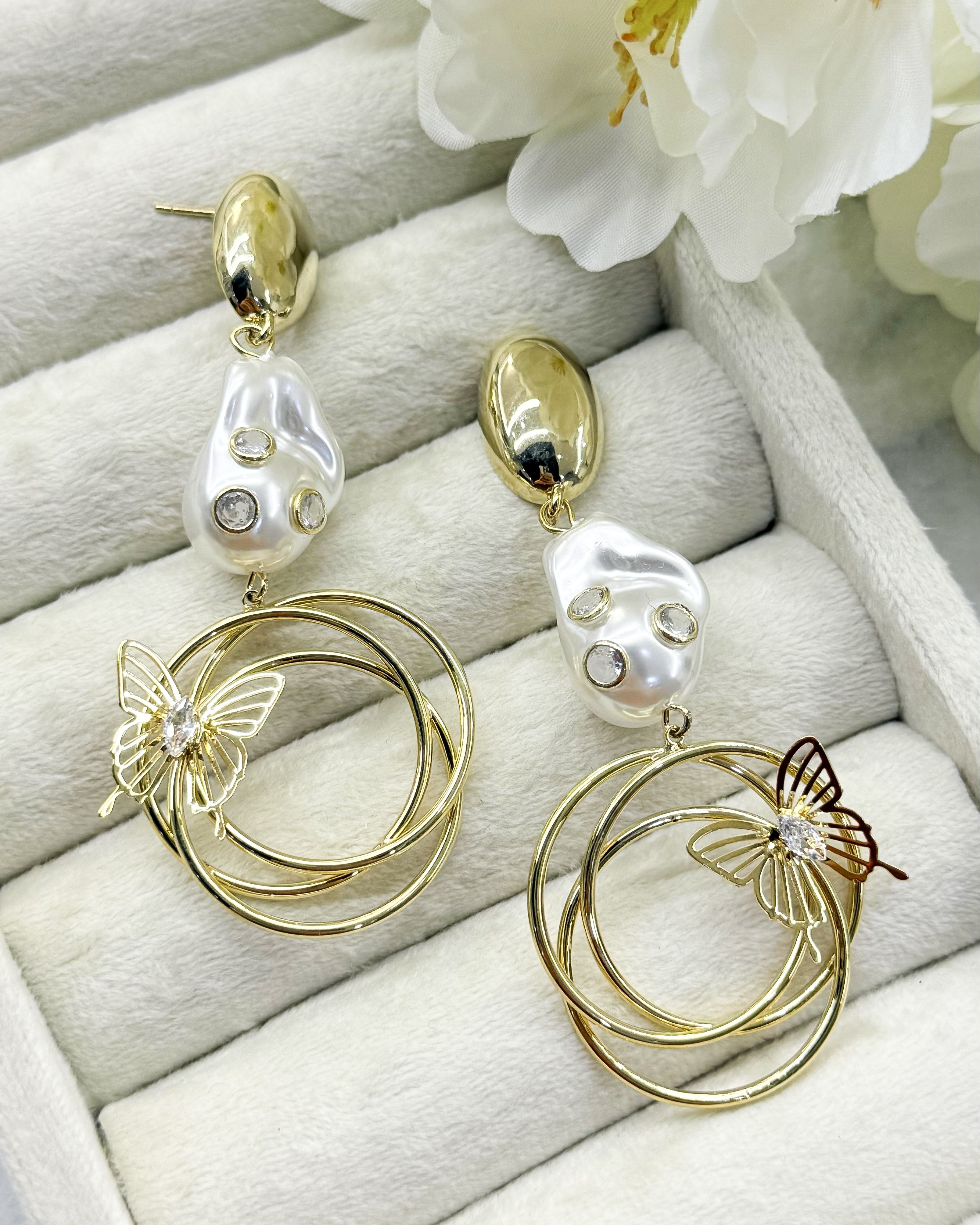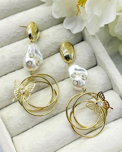 گوشواره حلقه مروارید پروانه گلدرنگ هدیه خاص و جذاب