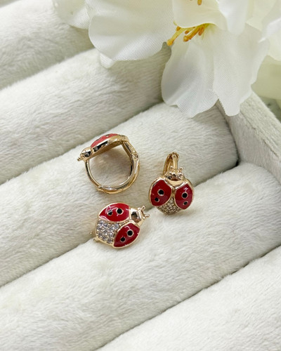 گوشواره ژوپینگ دخترونه کفشدوزک ظریف و کوچولو مشابه طلا حمام آزاد