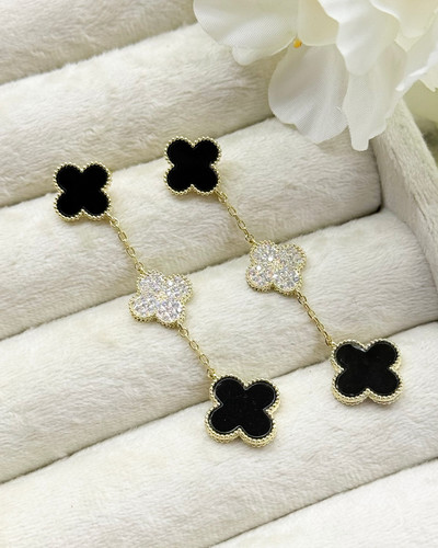 گوشواره زنانه ونکلیف آویز نگیندار مشکی