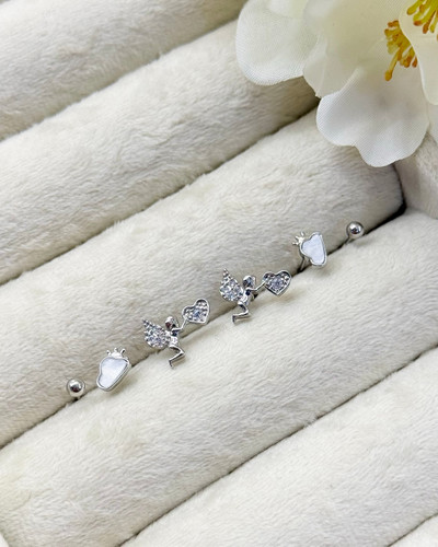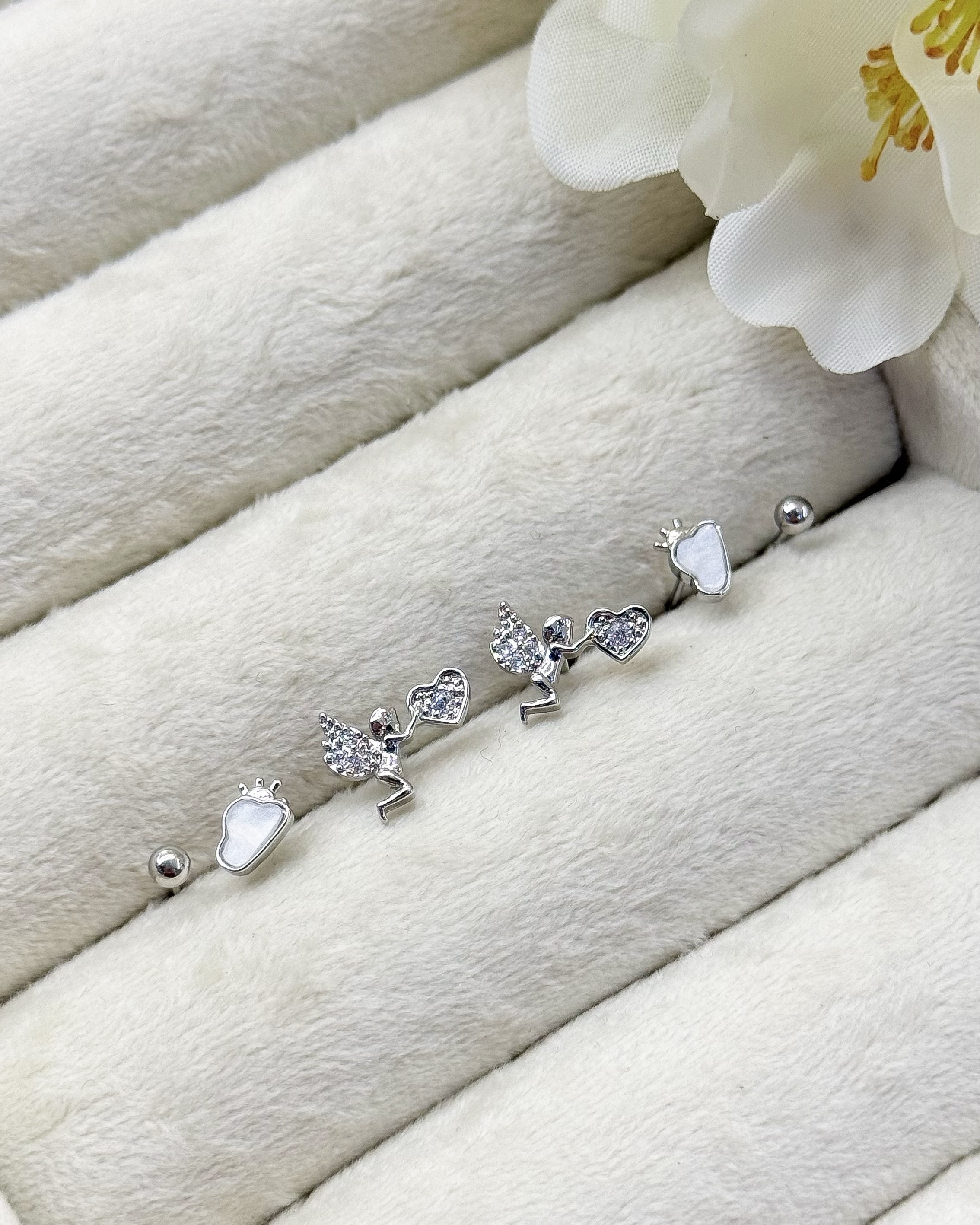 گوشواره فرشته کوچک پک 6عددی با آبکاری میخ نقره هدیه خاص و جذاب
