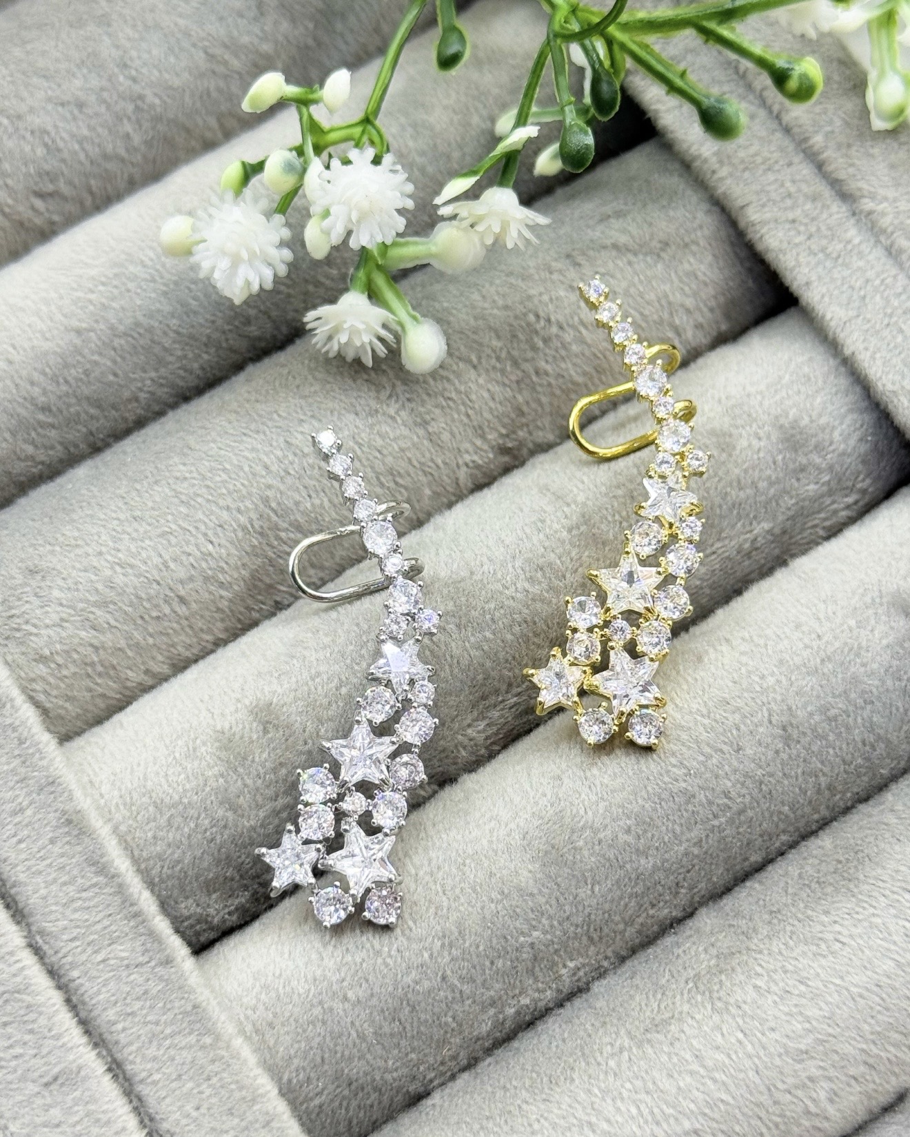گوشواره یلدایی کارتیه فول نگین طرح مشابه طلا هدیه خاص و جذاب