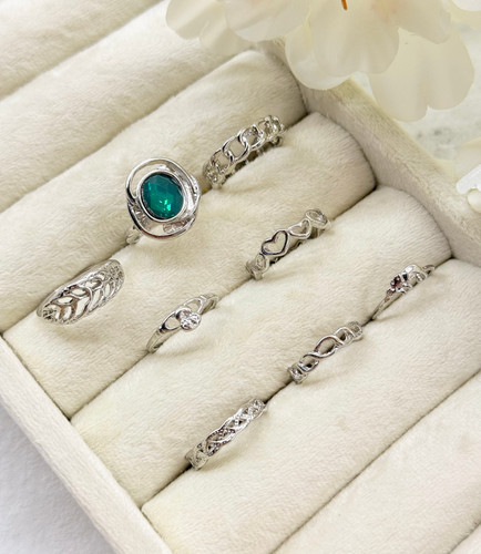 ناموجودپک انگشتر ۸عددی نگین سبز دریایی رنگ نقره ای