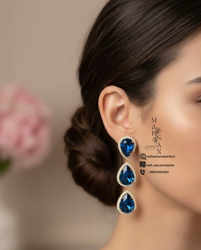 گوشواره ژوپینگ کریستال اشک آبی