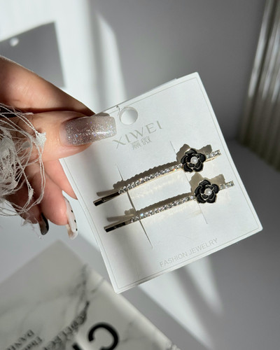 گیره مو گل سیاه نگیندار مجلسی جذاب و خاص 2عددی