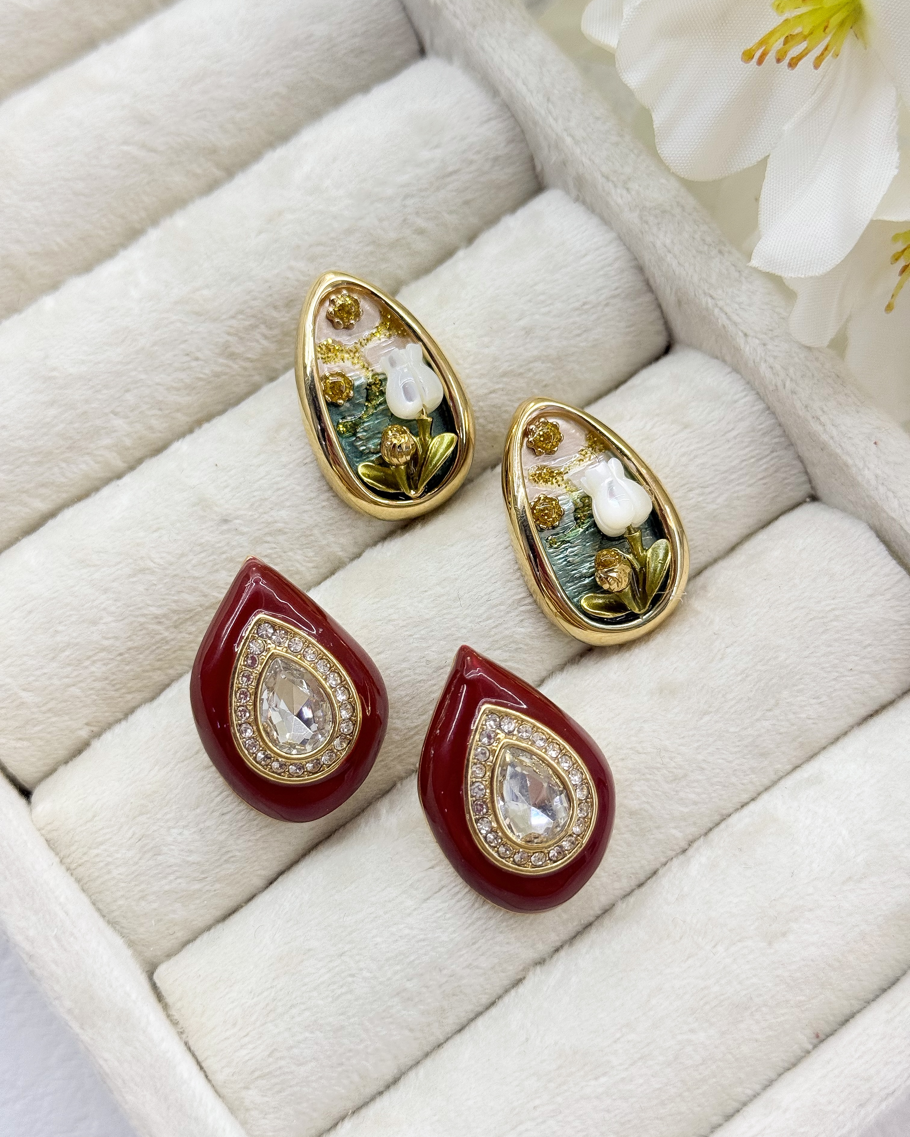 گوشواره نقاشی شده هنری قاب فرانسوی
