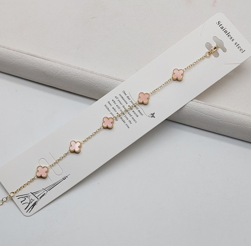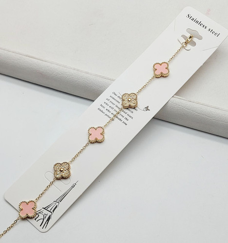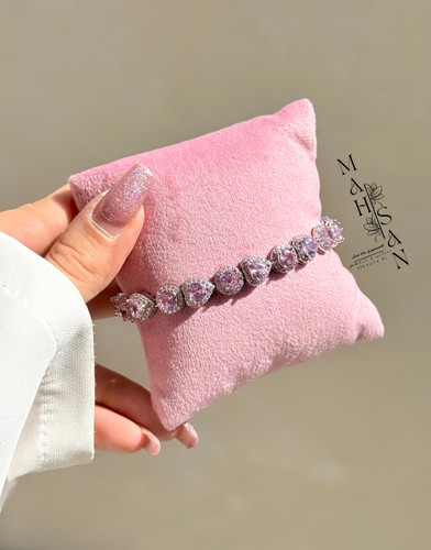 دستبند جواهری فول نگین قلب باربی صورتی کد XU2040