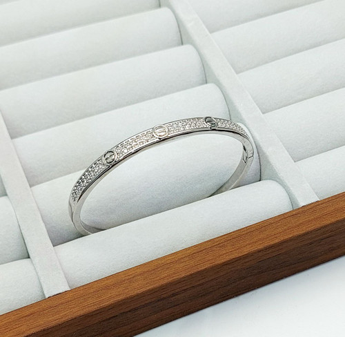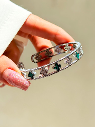 بنگل زنانه اورجینال فول نگین سیلور ماری طرح طلا کد XU2094