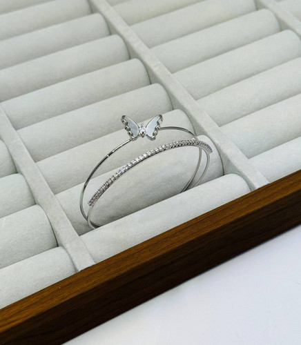 بنگل زنانه اورجینال سیلور طرح طلا کد XU2068