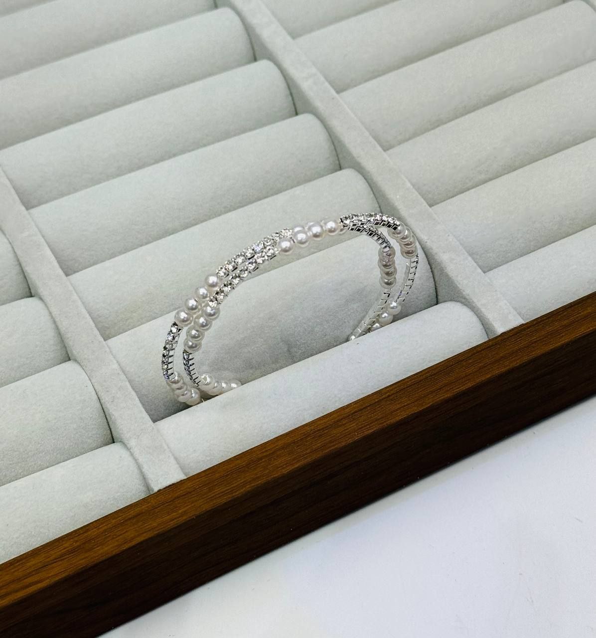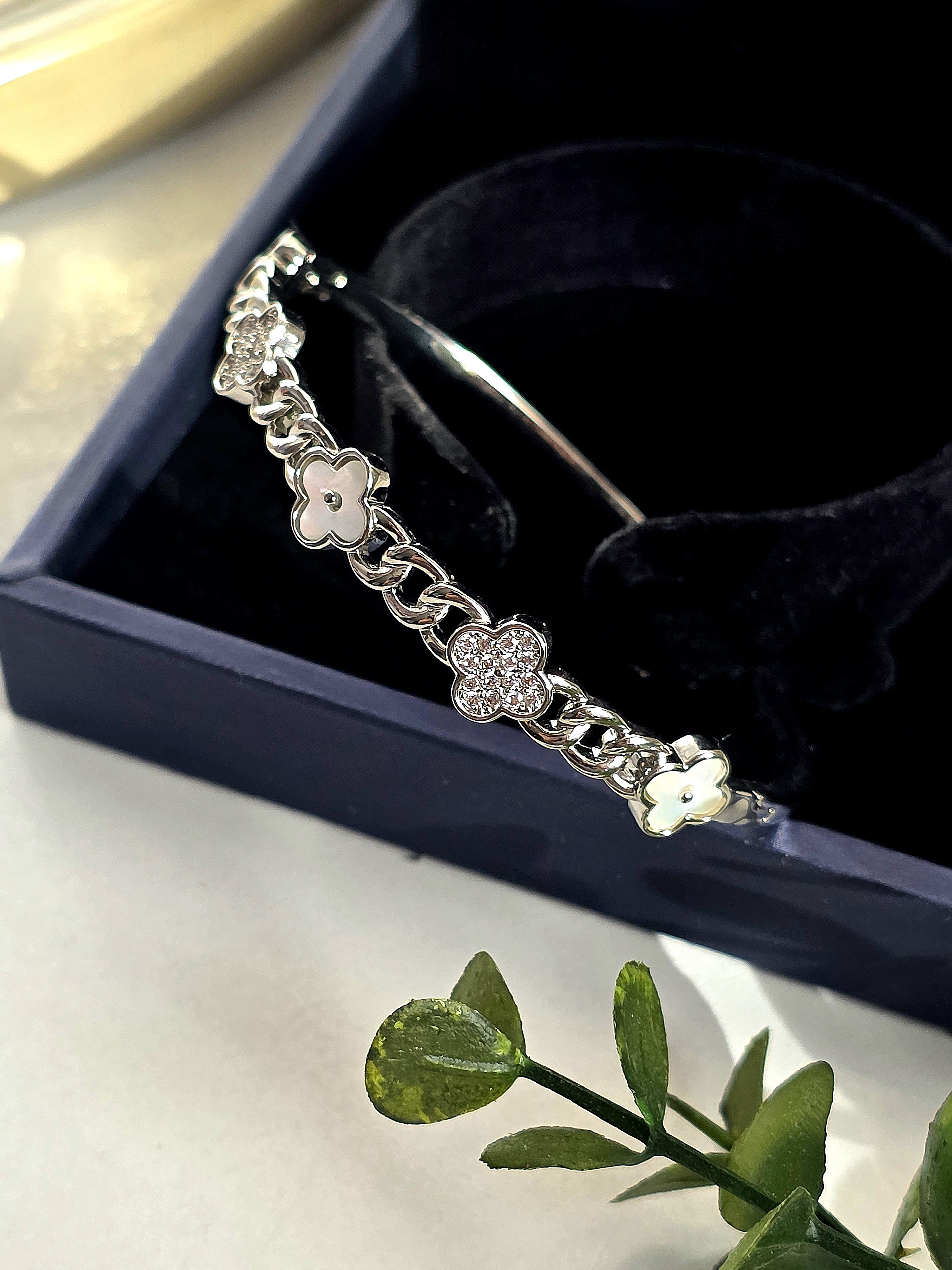 بنگل زنانه اورجینال فول نگین سیلور ماری طرح طلا کد XU2094