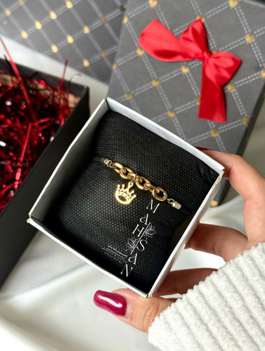 دستبند آویز تاج ملکه بند مشکی قابل تنظیم