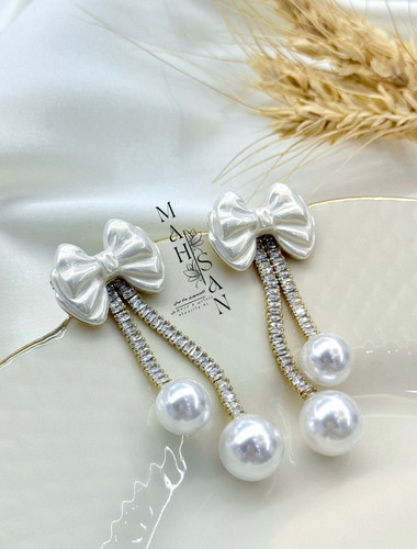 گوشواره پاپیون صدفی با آویز تنیسی جواهری
