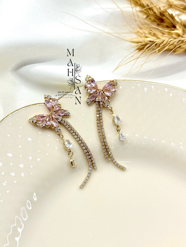 گوشواره پروانه کریستال صورتی طرح دلناز