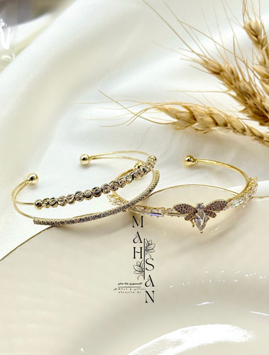 دستبند بنگل کریستال جواهری طرح برلیان رنگ طلایی