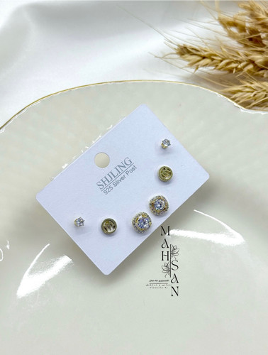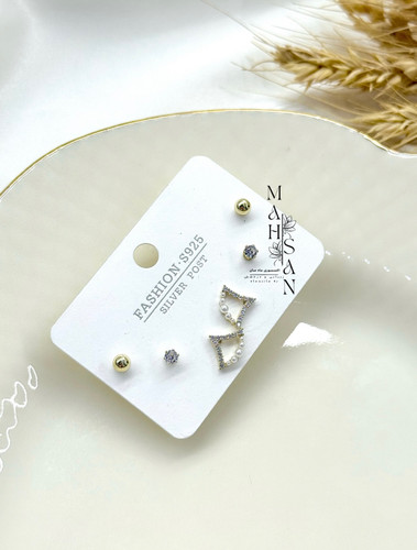 گوشواره مربعی جواهری کد Xu019319 ۶عددی