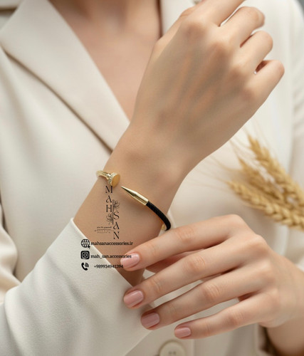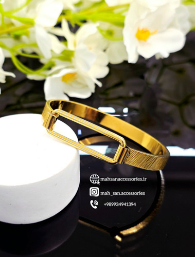 دستبند بنگل فشن رنگ گلد رنگ ثابت طرح حلقه دو موج