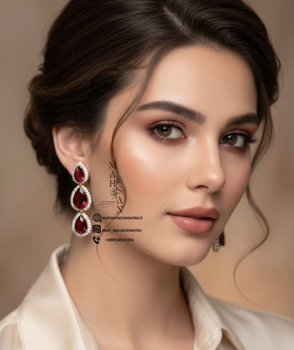 نیم ست ظریف زنانه جواهری سلطنتی یاقوتی کد Xu017634
