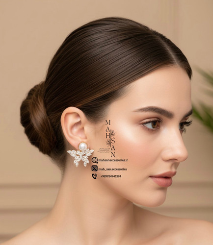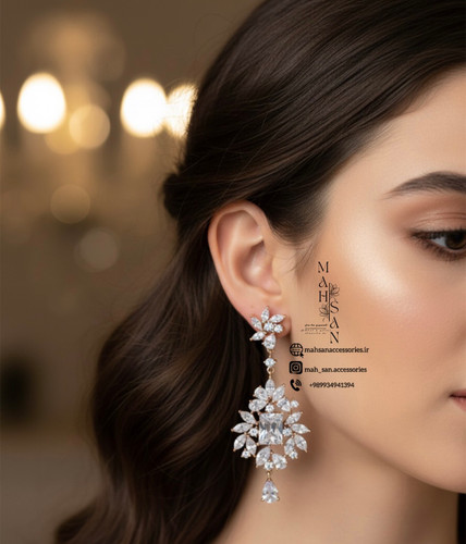 گوشواره زنانه طرح طلا فول نگین رنگ سیلور