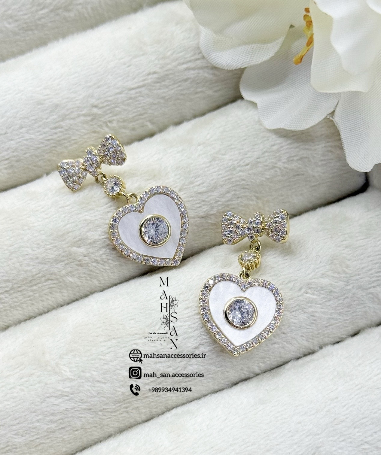 گوشواره قلب پاپیون جواهری جذاب سایز خیلی کوچک