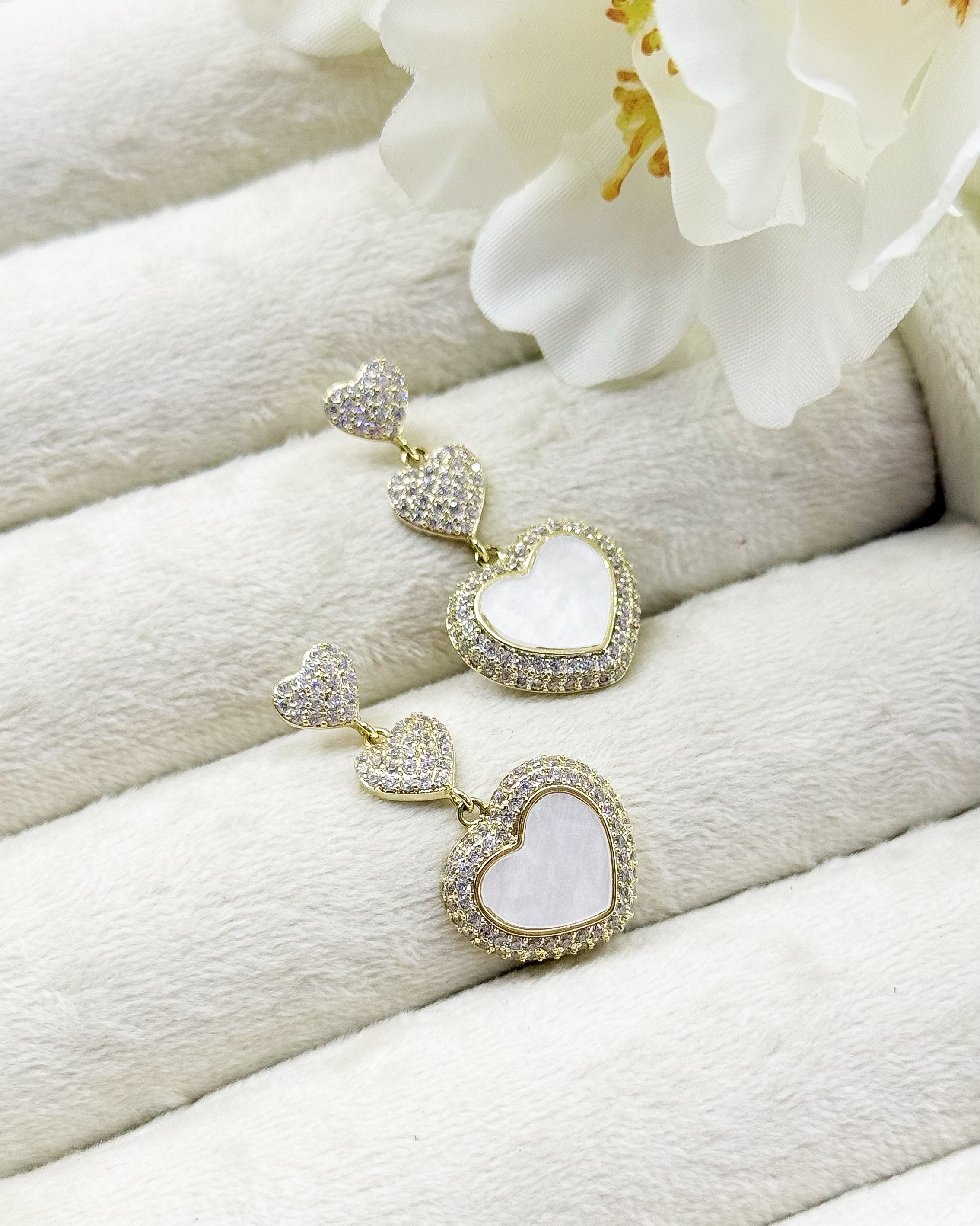 گوشواره دخترانه قلب آویز نگیندار طرح رزیا سایز کوچک